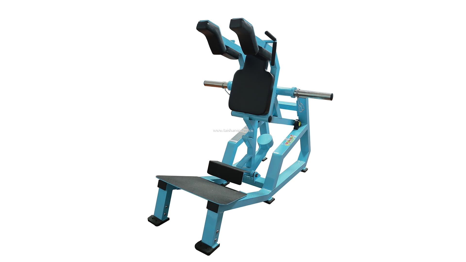 Training method: Place the back of the trunk on the back cushion of the instrument, open the legs, keep a medium distance with the shoulders width, and release the safety bar. Start to slowly lower, bend the knees, keep straight, continue to fall until the angle between the thigh and calf is slightly less than 90 degrees, and then restore slowly.